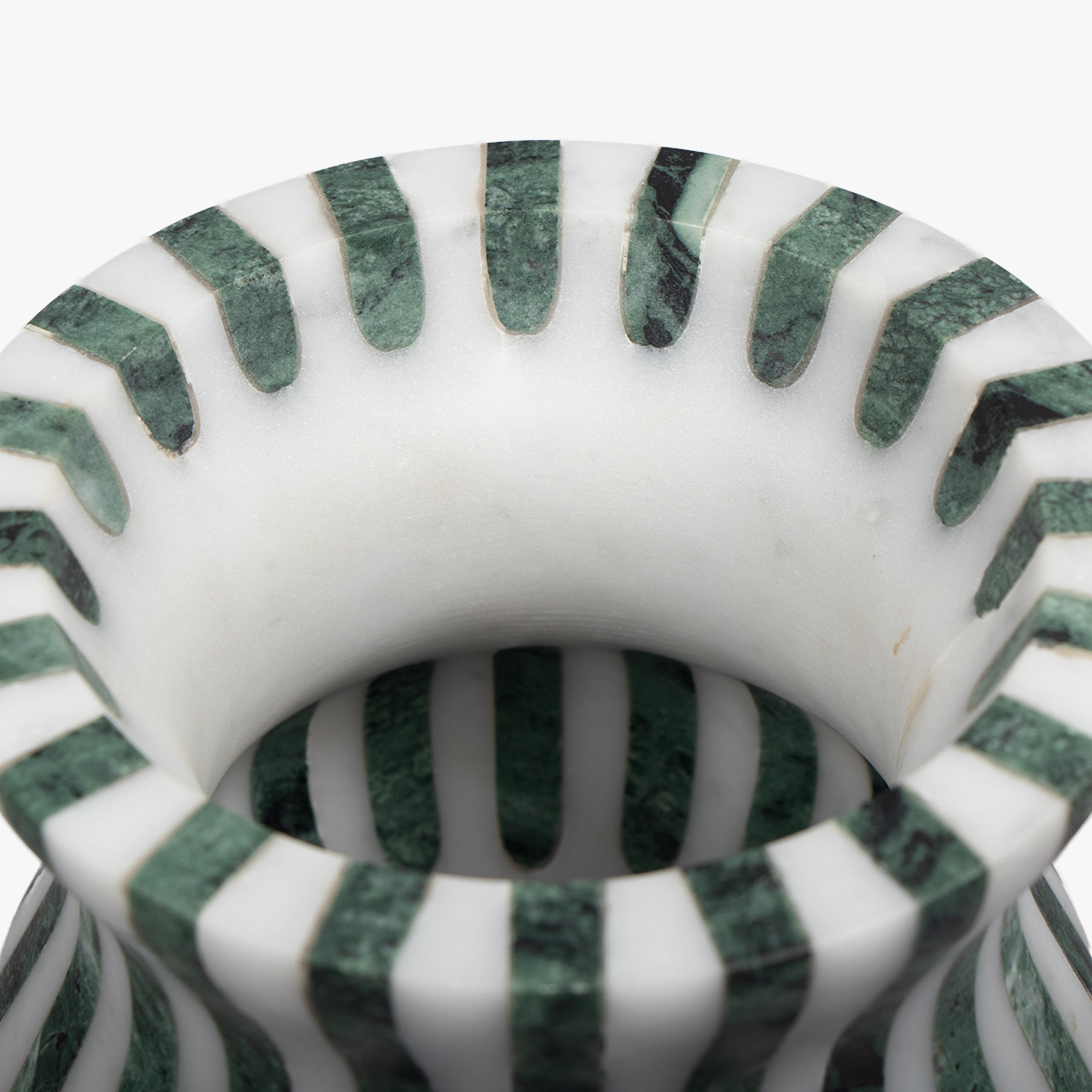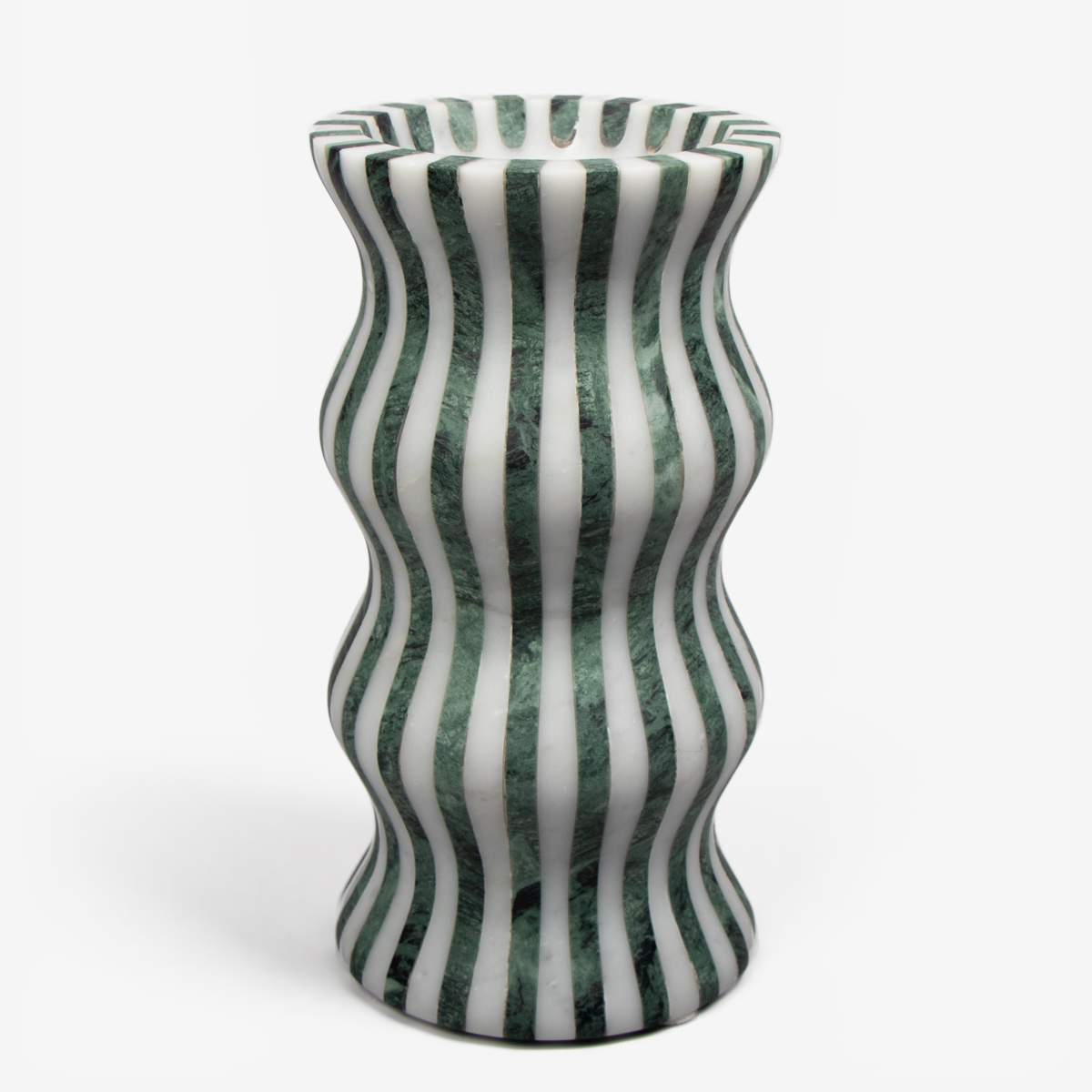 Vaas gemaakt van Arabescato marmer wat gewonnen wordt in de Apuaanse bergen. Gecombineerd met groen Alpi marmer.